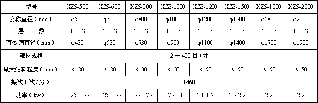 XZS系列旋振篩振動形式特殊,物料運動軌跡和振幅可調(diào),滿足不同工藝要求。任何顆粒、細粉、漿液均可篩分過濾;篩分效率高,既可概略分級,又可進行精細篩分或過濾;體積小、重量輕、安裝移動方便;網(wǎng)架設(shè)計獨特、換網(wǎng)容易,篩網(wǎng)壽命長、清洗方便、操作簡單;全封閉,無粉塵溢散,有利于改善勞動條件;粗、細料自動分級排出,能實現(xiàn)自動化作業(yè);出料口繞軸線360°任意設(shè)置,便于布置配套設(shè)備;耗能小,噪音低、滿足節(jié)能、環(huán)保要求;保養(yǎng)簡單,可單層或多層使用。