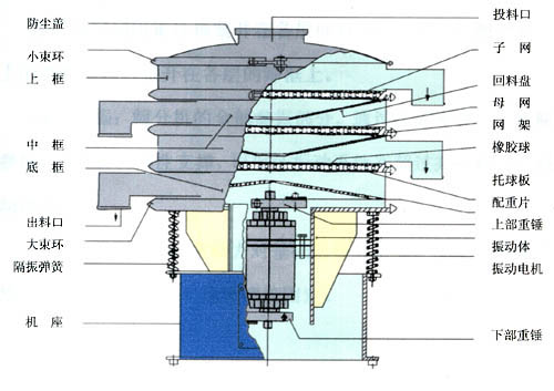 XZS系列旋振篩是在S49系列旋振篩的基礎(chǔ)上,吸收國內(nèi)外先進技術(shù),并采用先進的加工工藝而設(shè)計的高精度篩分過濾機械,它是以立式振動電機或?qū)S眉ふ衿鳛檎駝釉矗⑹秸駝与姍C(或激振器)上、下端裝有偏心重錘,可產(chǎn)生水平、垂直、傾斜的三次元運動,通過調(diào)節(jié)上、下偏心重錘的相位角,改變物料在篩面上的運動軌跡以達到篩分各種物料的目的。該產(chǎn)品適用于任何粉、粒、液的篩分和過濾的行業(yè)。廣泛用于化工、醫(yī)藥粉、液、涂料、顏料、化妝品、油脂、樹脂、陶瓷漿、粘土泥漿、生石灰、耐火材料粉末,冶金粉末、電磁粉末、研磨粉、果汁、飲料、食糖、食鹽、味精、調(diào)料、奶粉、淀粉、面粉、米粉、碳粉、石墨粉、錳粉、碳酸鋰、助溶劑、滅火劑以及環(huán)保行業(yè)的污水、廢水處理的工藝過程中的篩分、過濾。