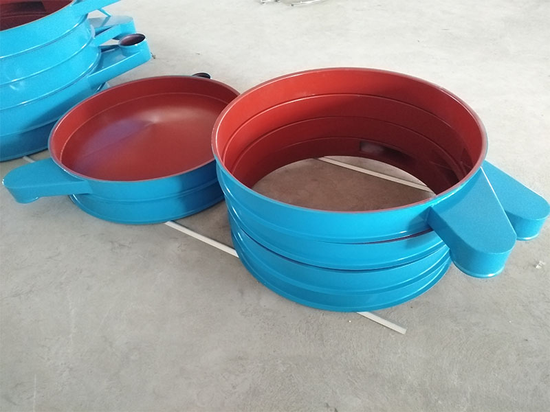 旋振篩中框是旋振篩不可缺少的部分,主要起密封、收集物料及排料的作用,除防粉塵溢散及保護物料受外界污染,使整個生產(chǎn)在封閉條件下進行外,還可以收集物料并把該層篩網(wǎng)的篩上物從出料口中排出,其材質(zhì)主要有不銹鋼和普通碳鋼。同時我們針對難篩物料及篩上物少等特殊情況,設(shè)計出閘門型中框,是在中框的出料口處增加了拉桿式閘門,在生產(chǎn)過程中可以根據(jù)物料篩分情況進行定時放料,提高透網(wǎng)率,可以根據(jù)客戶需要在上蓋上開觀察孔,保證在生產(chǎn)的過程中隨時觀察物料運行情況;此外我公司還可以根據(jù)用戶需要進行特殊設(shè)計。
